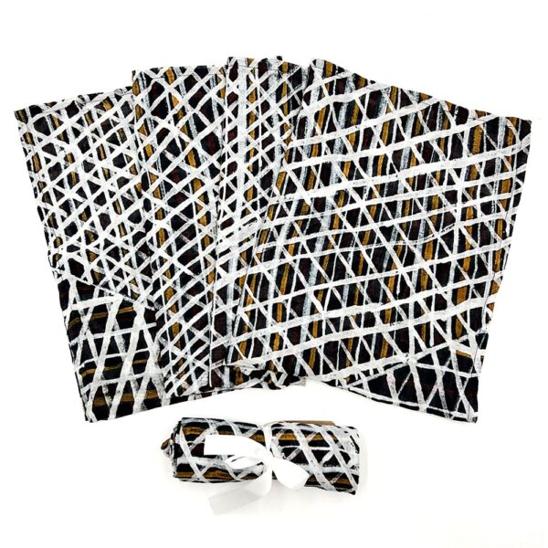 Wrap your baby in the rich heritage of Aboriginal art with the Baby Swaddle_PPU135. This beautifully designed swaddle takes inspiration from a Dreaming story about two dog ancestors, a Jampijinpa and a Napangardi, who traveled from the west to the east. Their journey, filled with spiritual and cultural significance, is vividly reflected in the design. This blend of tradition and storytelling adds a meaningful touch to your babyโs comfort.