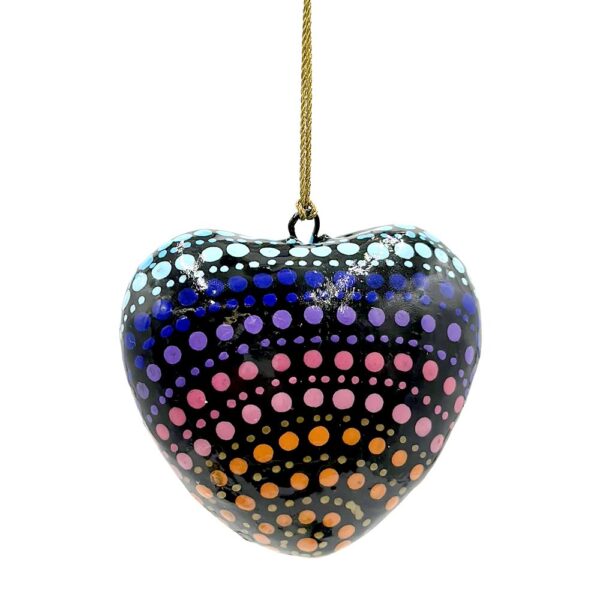 This beautifully crafted decorative heart showcases unique artwork inspired by Indigenous stories and landscapes. With its high-quality lacquer finish and intricate design, this heart ornament brings cultural heritage and artistry into any space. Perfect as a thoughtful gift or decor piece, it celebrates tradition in one beautiful keepsake.