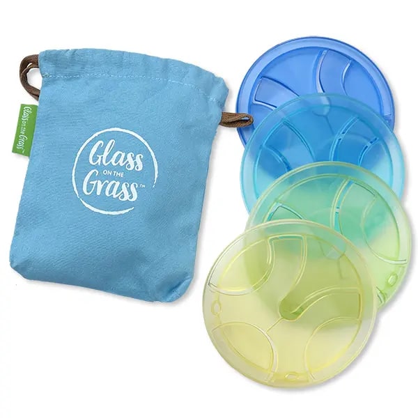 Ingenious coasters are designed by Stephen and Lee at Glass on the Grass to keep your wine glass steady in outdoor settings.