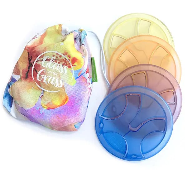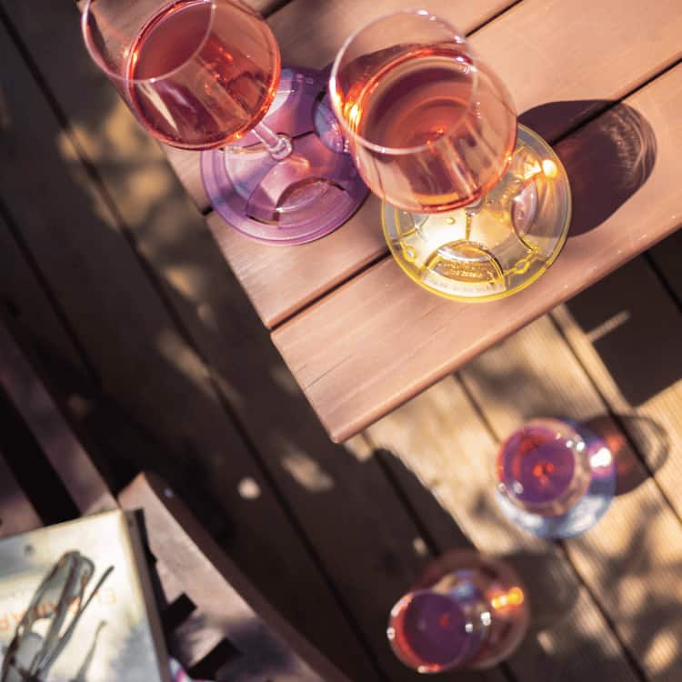 Ingenious coasters are designed by Stephen and Lee at Glass on the Grass to keep your wine glass steady in outdoor settings.