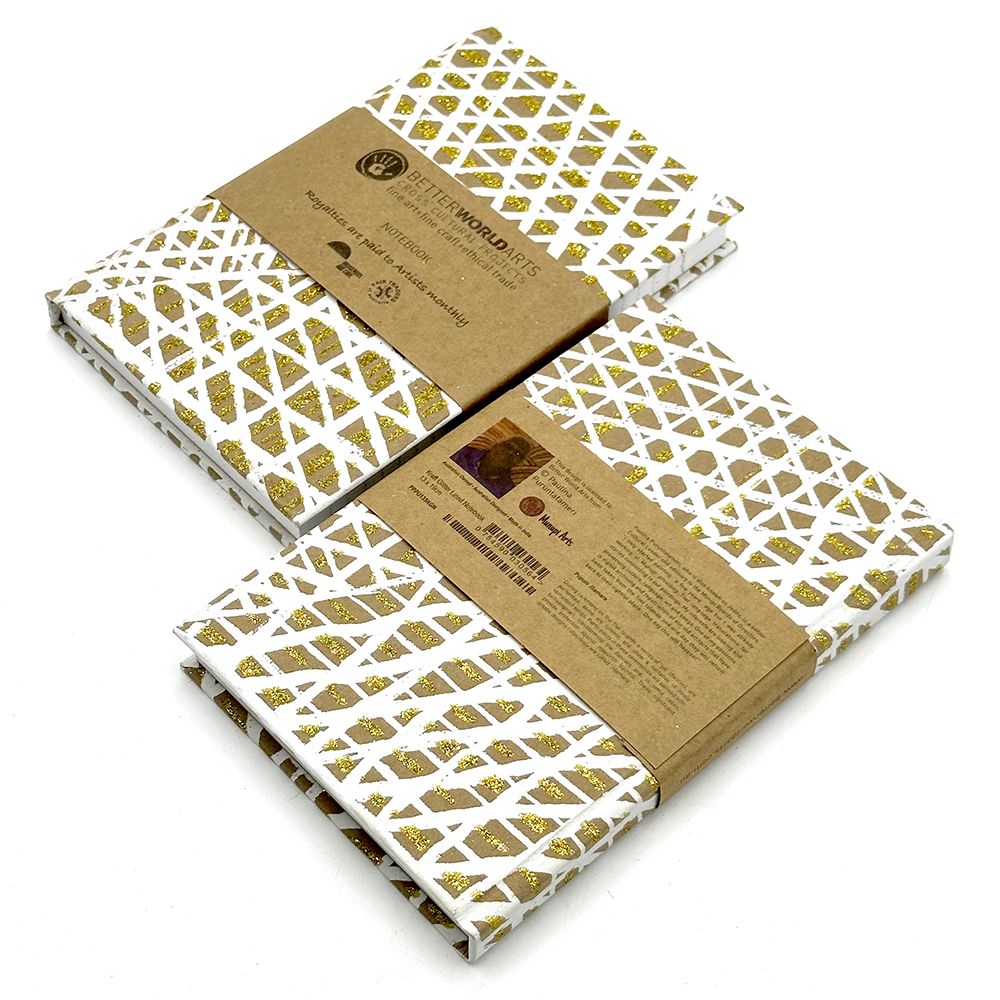 Featuring Paulina Puruntatameri’s Jilamara design, this kraft glitter lined notebook celebrates Tiwi Island ceremony and contemporary Indigenous art.