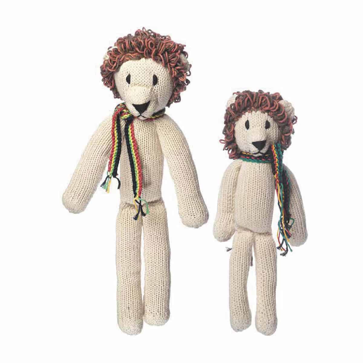 Organic Cotton hand-knitted Lion, Medium (40cm high) & Small (28cm high)