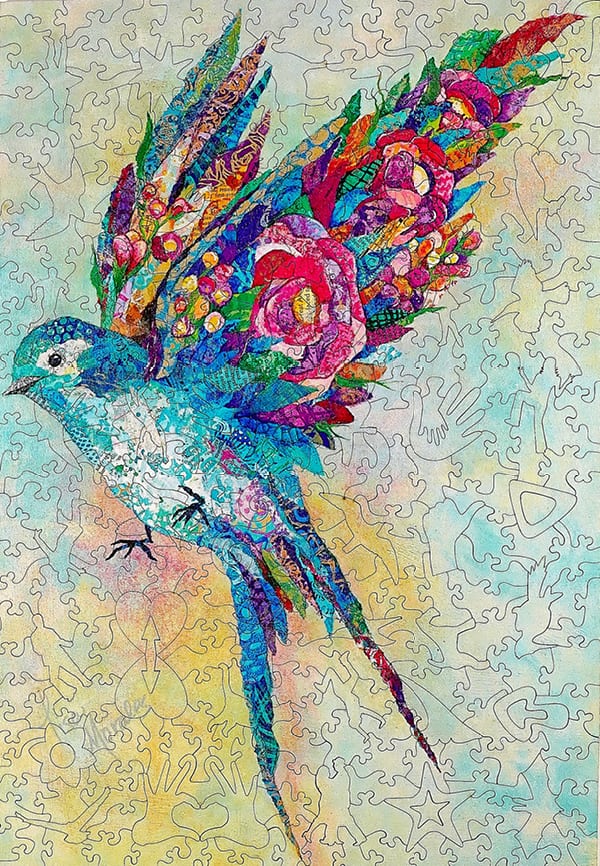 This magnificent botanical swallow is jam-packed with whimsy pieces of delicate hands, body movements and various flight birds that will amaze you. The image on this puzzle is original artwork by Lisa Morales.